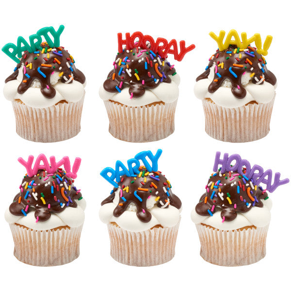 Añade un toque de color a tus dulces de cumpleaños con estos globos con palabras para cupcakes. ¡Estas capas son perfectas para alegrar cualquier festividad de cumpleaños!