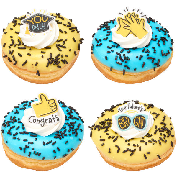 ¡El futuro es tan brillante que necesitamos gafas de sol! Alegra tus cupcakes de celebración de graduación con esta variedad de anillos de graduación.