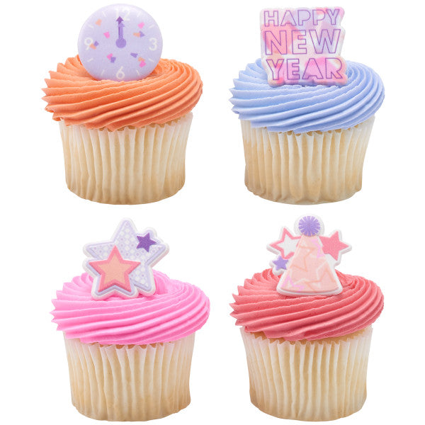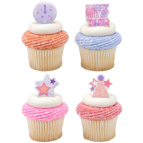 ¡Recibe el Año Nuevo con nuestros vibrantes y festivos anillos brillantes para cupcakes de Año Nuevo! Estos anillos brillantes son el toque perfecto de glamour para tu reunión de Nochevieja.