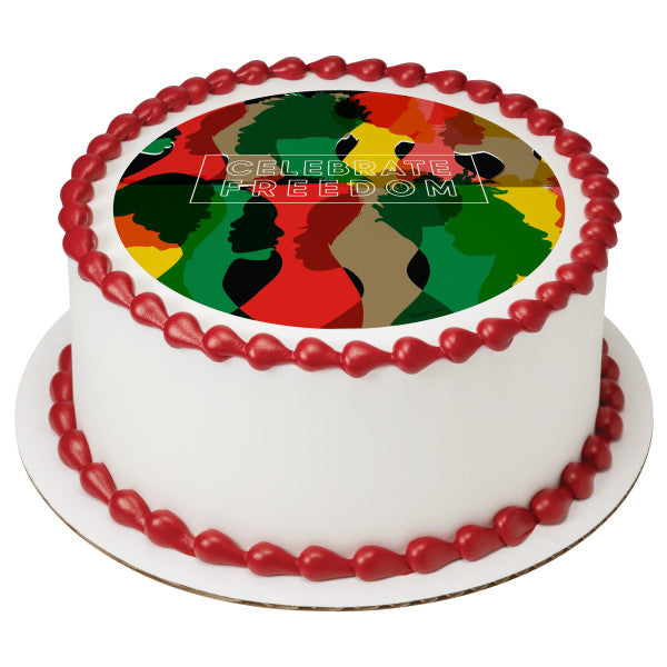 Celebre la libertad con esta imagen de adorno comestible para pastel con temática del decimonoveno.