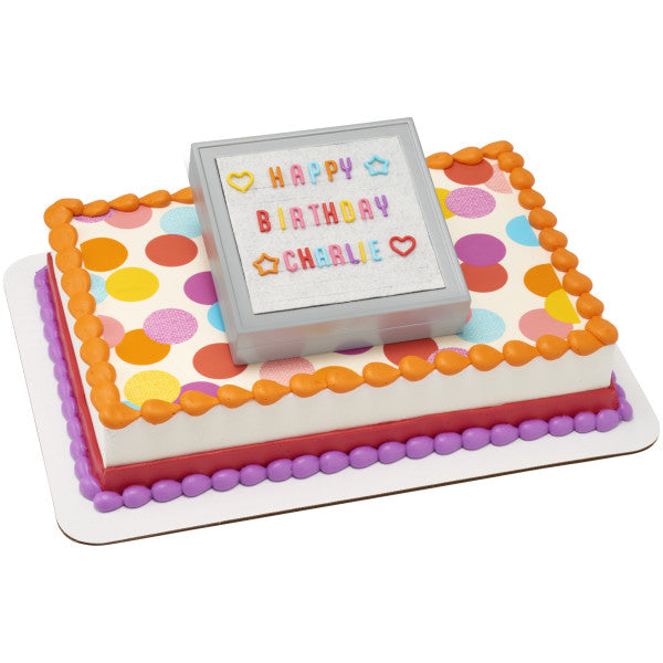 Tablero de letras de celebración DecoSet y fondo de imagen de adorno de pastel comestible