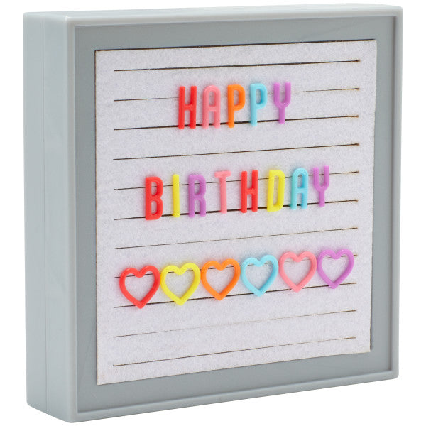 ¡Celebra con palabras! Este versátil DecoSet® incluye una caja de recuerdos con tablero de letras que le permite personalizar mensajes para cualquier celebración. Incluye más de 130 letras y símbolos de varios colores para crear un mensaje personal. Mensaje para montar en casa.