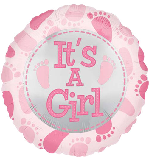 Haga el gran anuncio en un baby shower o revelación de género con un globo rosa y plateado. Hecho de papel de aluminio, este globo redondo presenta el titular "Es una niña" en el centro rodeado de lindas huellas de bebé. Añádelo a un ramo de baby shower o muéstralo solo.