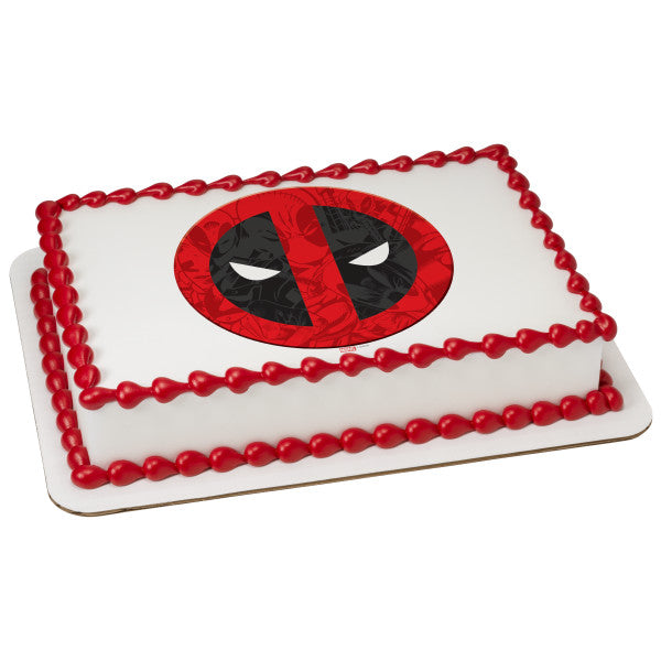 Imagen comestible para decoración de tarta con el icono de Deadpool de Marvel