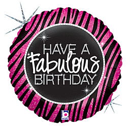 Celebre con este globo con estampado Bright Zebra. Este globo redondo de 36" presenta rayas de cebra de color rosa brillante y negro con la frase "Que tengas un cumpleaños fabuloso" en el centro.