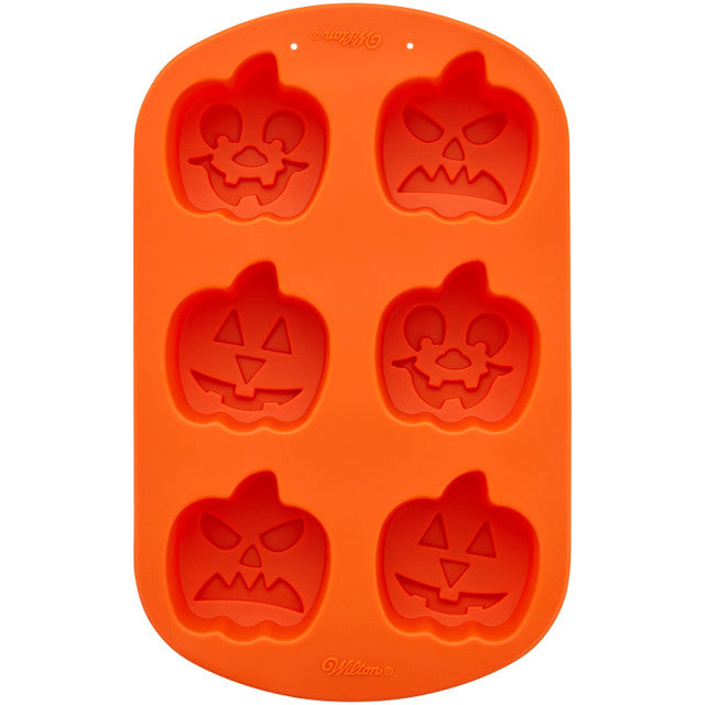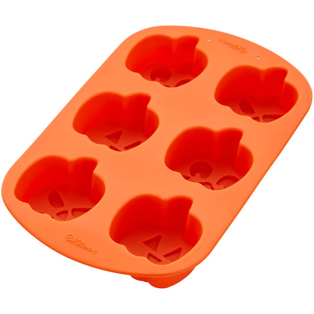Prepare lindas mini delicias para su celebración de Halloween con este divertido molde para hornear de silicona Wilton Jack-O-Lantern. Ideal para hacer pequeñas golosinas para llenar bolsas de regalos de fiesta o pasteles individuales para tu celebración espeluznante, este molde de silicona hace que sea divertido y fácil hacer mini golosinas que son divertidas de comer. Este molde de Halloween presenta tres lindos diseños de calabazas: una cara clásica, una cara enojada y una cara feliz (2 de cada diseño). Llene cada cavidad con su receta favorita de pastel de chocolate o vainilla, luego hornee según las instrucciones de la receta. Una vez enfriados, tus mini pasteles se pueden quitar y decorar como quieras. ¡Esta mini bandeja para golosinas también es excelente para moldear masas más pesadas, como brownies o bizcochos, y también se puede usar para hacer delicias de helado con formas!