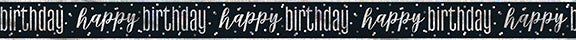 Pancarta "Feliz cumpleaños" de lámina prismática negra y plateada brillante, 9 pies, 1 unidad