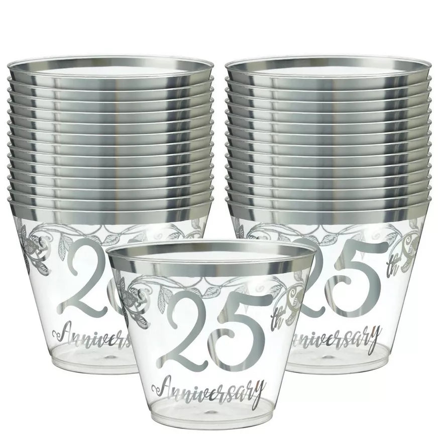 Vasos de plástico Happy 25th Anniversary de 9 oz, 30 unidades