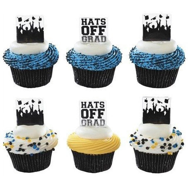 ¡Celebra el logro del graduado agregando estas DecoPics "Felicidades Grad" a tus cupcakes! Negro sólido, elegante y sencillo de trabajar con una variedad de colores de glaseado y espolvoreados.