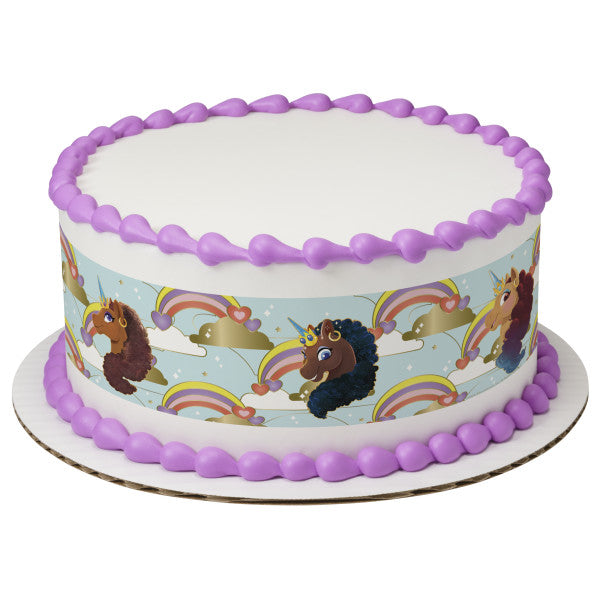 Tiras de imágenes comestibles para decoración de tartas con poderes mágicos de unicornio afro