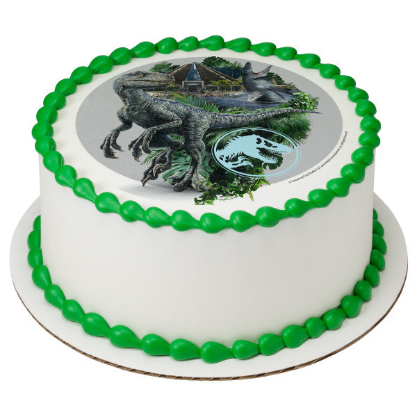 A los fanáticos de Jurassic World les encantará esta imagen. Completa la celebración con esta imagen de adorno de pastel comestible.