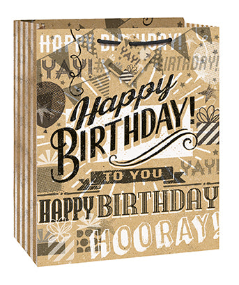 Bolsa de regalo de feliz cumpleaños de papel kraft, 10.5" x 12.5", 1 unidad
