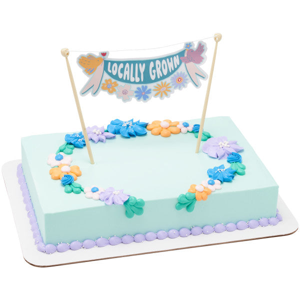 ¡Los ayudantes del jardín están preparando la fiesta! ¡Estos lindos pajaritos están colgando la pancarta para la reunión, junto con flores del jardín y un mensaje adorable! Combínalo con otros productos cultivados localmente para una fiesta en el jardín perfecta.