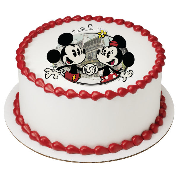 ¡Únete a Mickey y Minnie en esta imagen de adorno comestible para pastel!