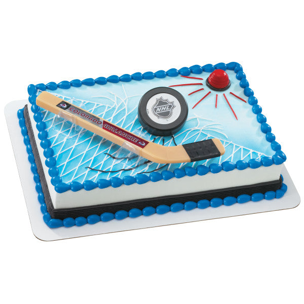 Celebre con un entusiasta del hockey con este pastel de acción de la NHL® Colorado Avalanche®. El NHL Slap Shot DecoSet cuenta con un palo de hockey y un disco como excelentes artículos para que cualquier fan los guarde después de su fiesta. Juego de 2 piezas.