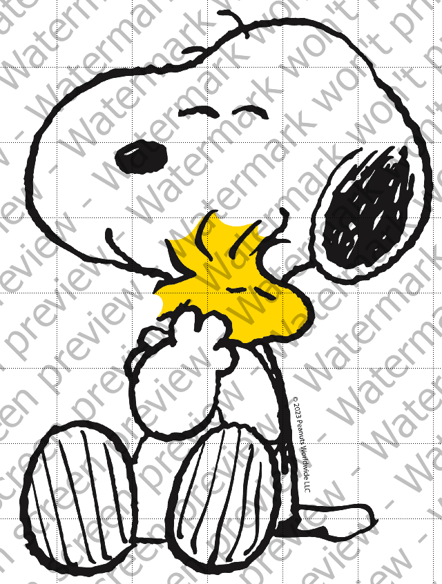 Esta imagen muestra a Snoopy y Woodstock en un abrazo amistoso. Completa la celebración con esta imagen de adorno de pastel comestible.