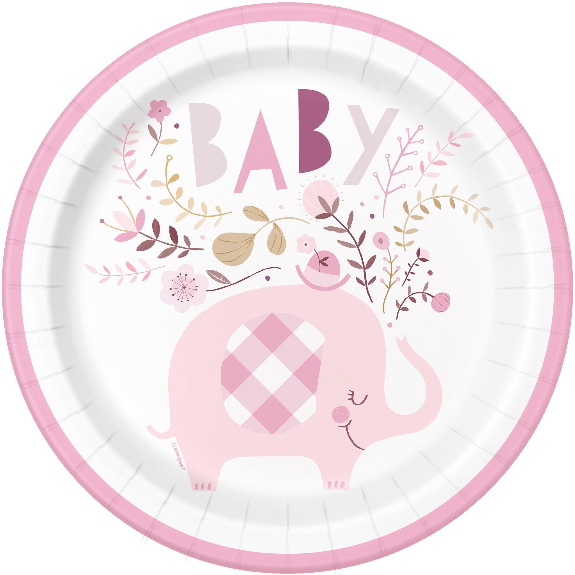 ¡Estos adorables platos llanos de elefante floral rosa son un complemento perfecto para los artículos para baby shower y artículos para la primera fiesta de cumpleaños!