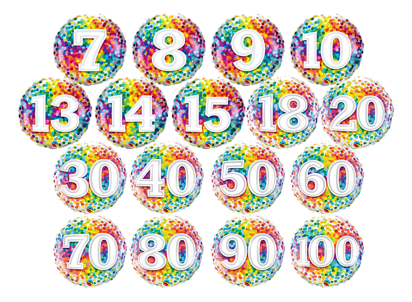 Globo de aluminio redondo con número de confeti arcoíris de 18", 1 unidad