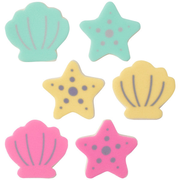 ¿Mar, junto al mar? ¡Dirígete a la playa donde todos los días es verano con los adorables Sweet Decor Sea Minis! ¡Este surtido incluye 3 conchas en azul, amarillo y rosa y 3 estrellas de mar en azul, amarillo y rosa! Estos formatos de tamaño mini son perfectos para aquellas creaciones más pequeñas. Producto comestible elaborado principalmente a base de azúcar con un delicioso sabor a vainilla.