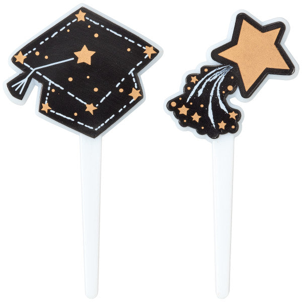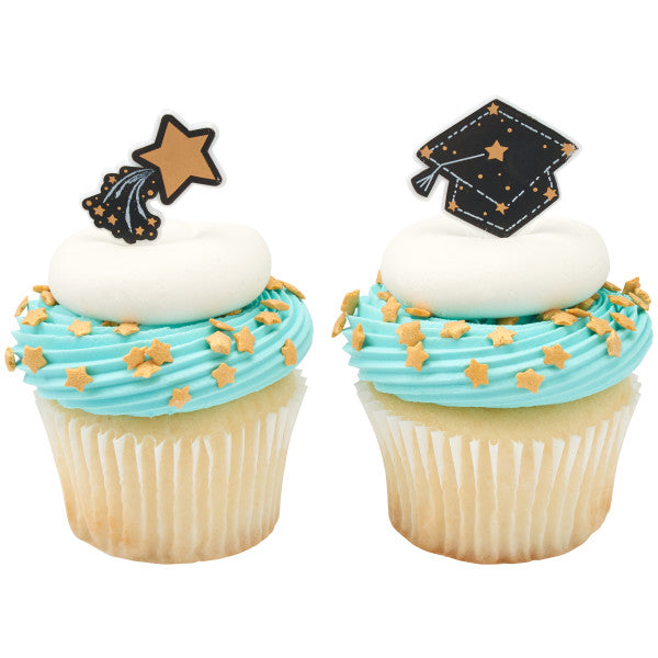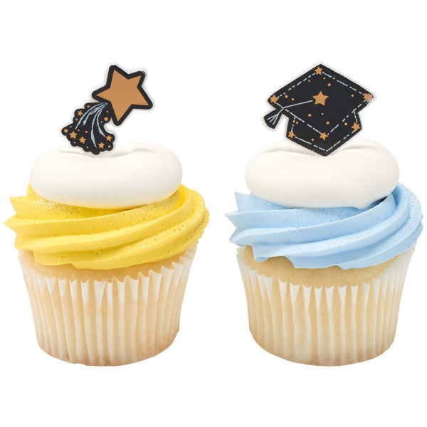 ¡Haz que tus postres brillen aún más con estas fotos decorativas de Shoot for the Stars! Surtido de una estrella fugaz y un sombrero de graduación negro. Perfecto para cualquier regalo, grande o pequeño.