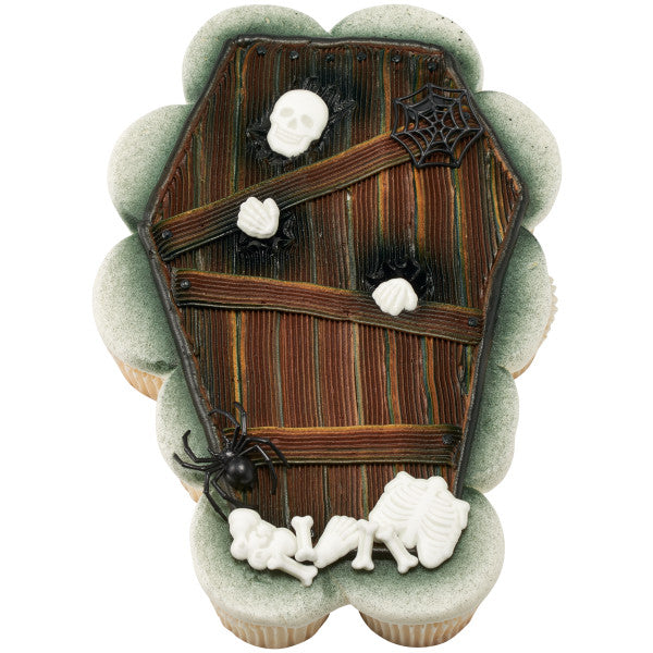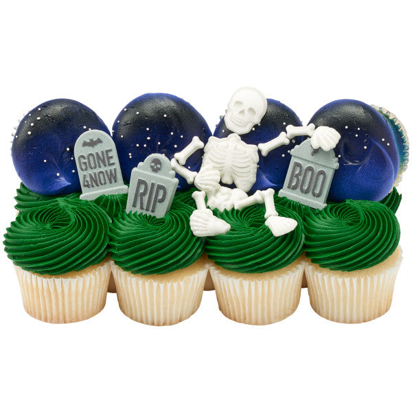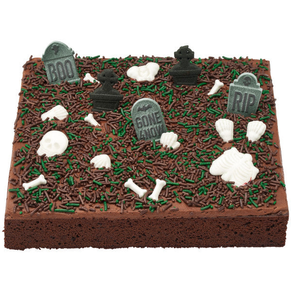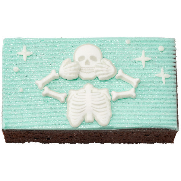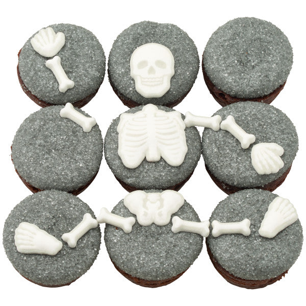 ¡Esqueleto espeluznante y aterrador! Arma tu propio esqueleto en una panadería, que puedes colocar juntos para crear un esqueleto completo o separarlos para darle una apariencia de cementerio. Cada esqueleto consta de 15 huesos. ¡Las opciones de decoración son infinitas con este surtido! Hecho de azúcar finamente granulada moldeada en formas y pintada con colorantes alimentarios comestibles.