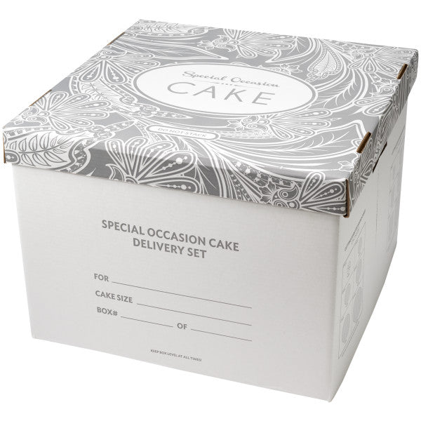Crea y transporta pasteles para ocasiones especiales con facilidad. Los juegos de estructuras para pasteles eliminan las conjeturas al ordenar componentes o realizar inventarios antes de que sean necesarios. Una caja para colocar pasteles con pilares de 14", 16", 18" o 20". Tabla para pastel con volantes o tambor de aluminio. La altura de la caja aumenta para adaptarse a la configuración de pilares y placas.