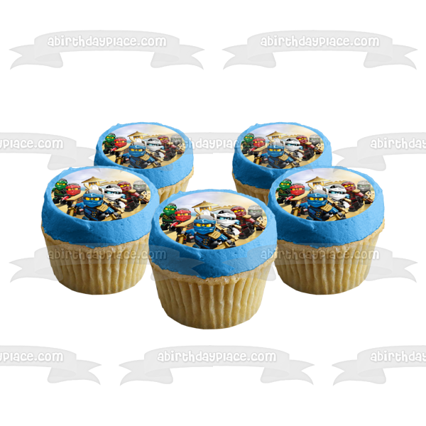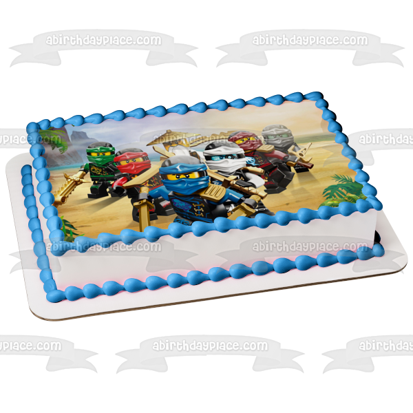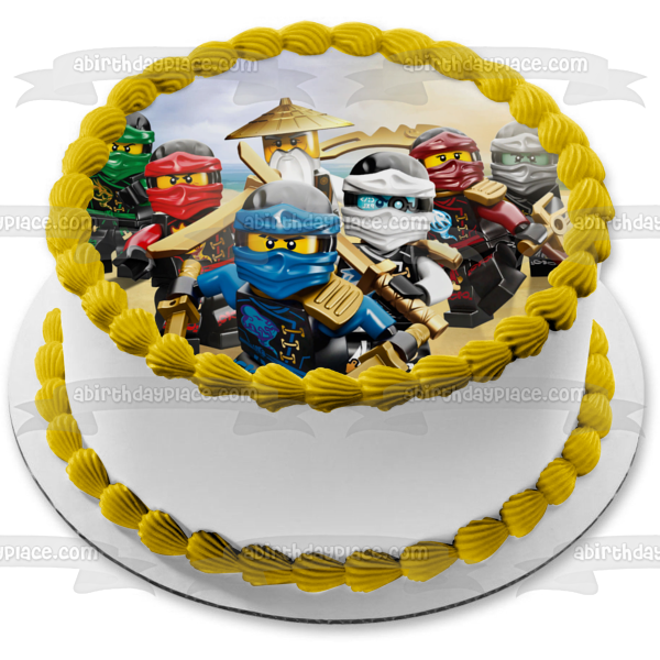 Decorate your LEGO Ninjago fan's cake with this Edible Cake Topper Image featuring Lloyd, Sensei Wu, Fuchsia Ninja, Zane, Kai and Jay!