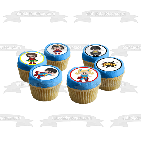 Superman Supergirl Wonder Woman Batman Robin Pow Edible Cupcake Topper Images ABPID00074