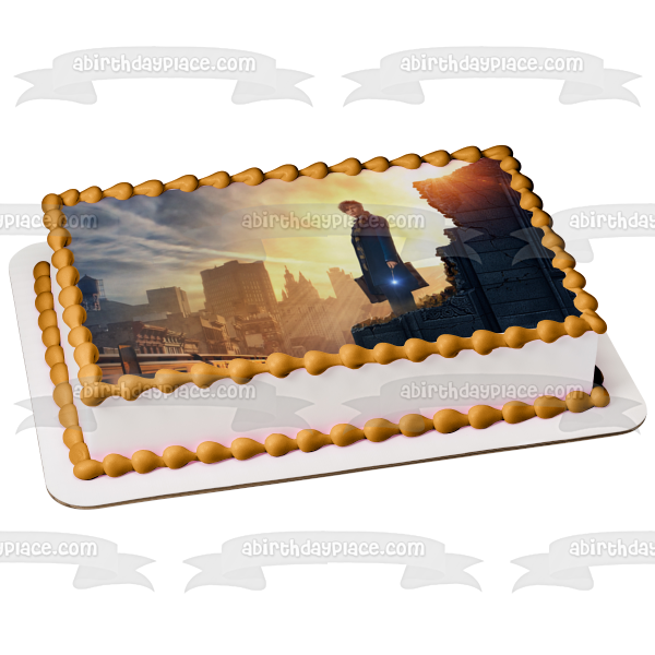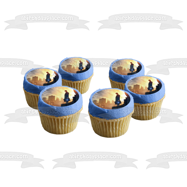 Celebrate your special occasion with this Fantastic Beasts and Where to Find Them themed Edible Cake Topper Image featuring Newt Scamander in the city at sunset!