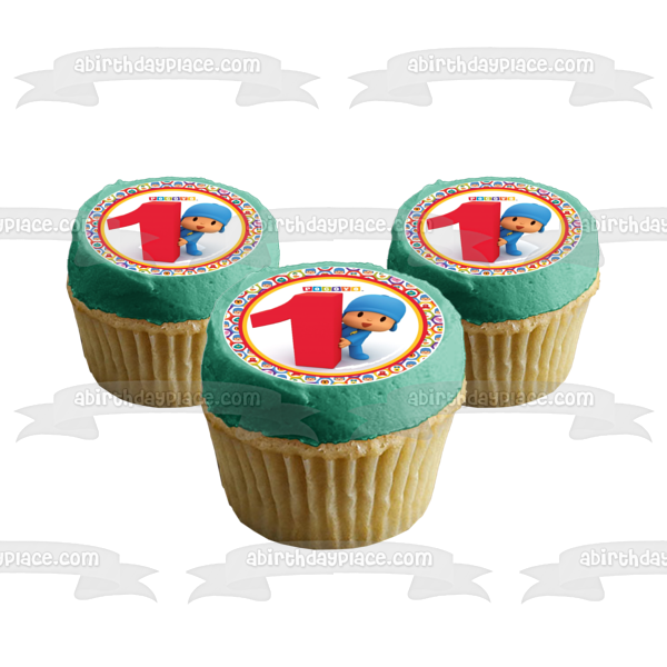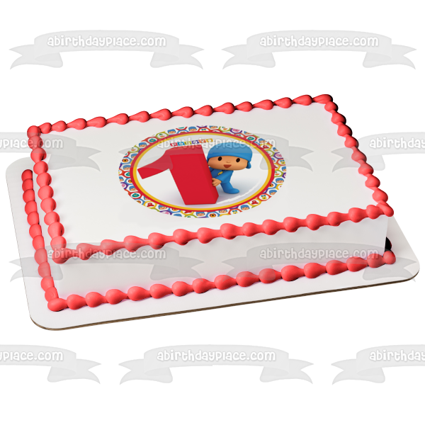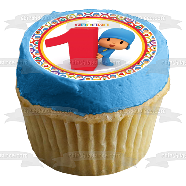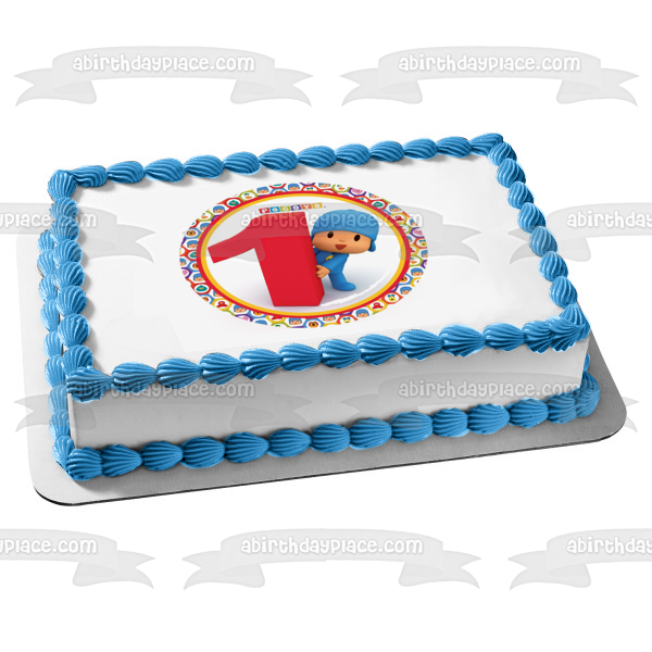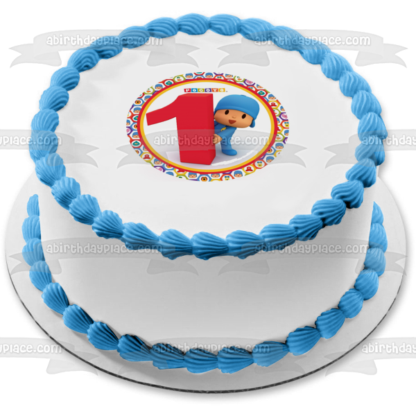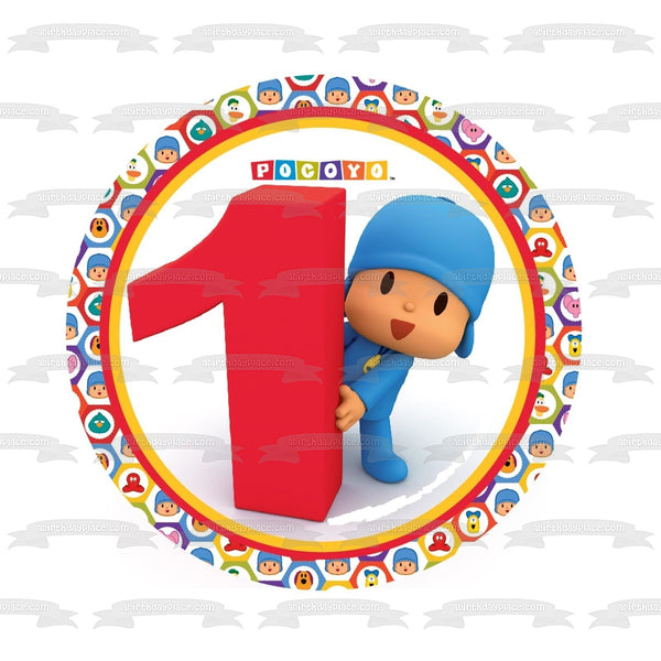 Celebrate your special day with this Pocoyo themed Edible Cake Topper Image featuring Pocoyo next to a giant #1 with a circular border of his friends, Pato, Elly and Loula