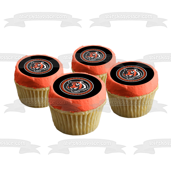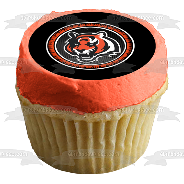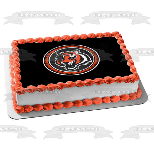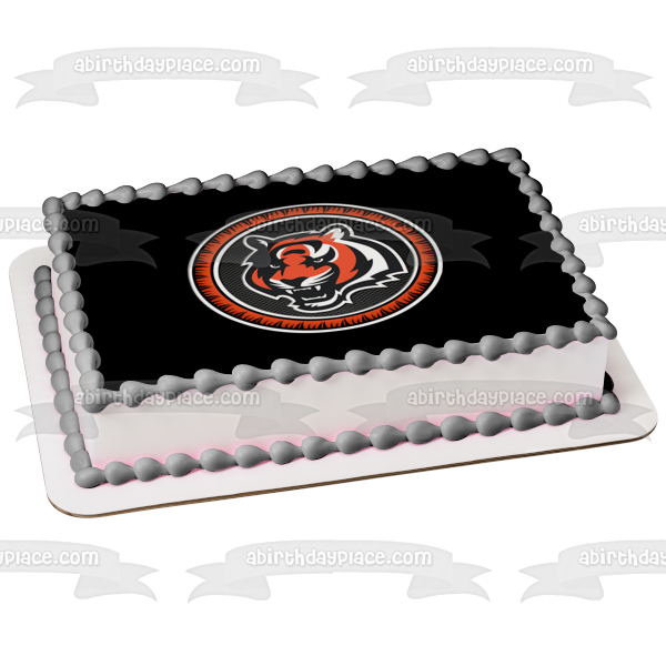 Celebrate your sports fan with this NFL themed Edible Cake Topper Image featuring the Cincinnati Bengals Logo on a Black Background!
