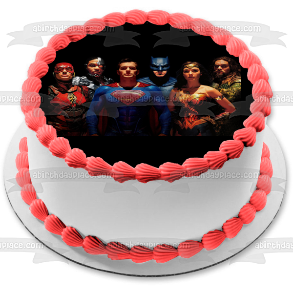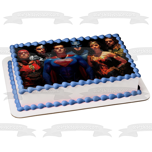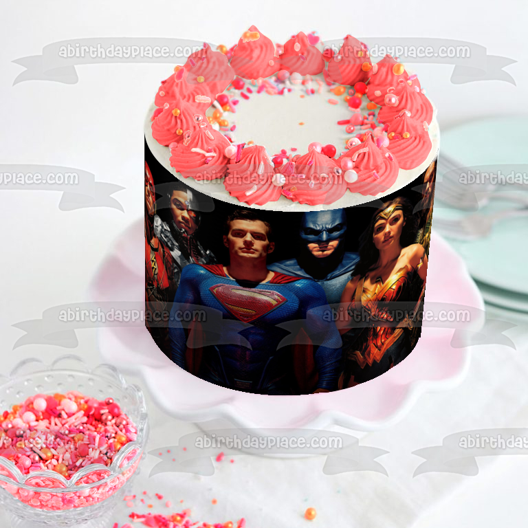 Celebrate your Justice League fan with this Edible Cake Topper Image featuring Superman, Wonder Woman, The Flash, Batman and Cyborg!