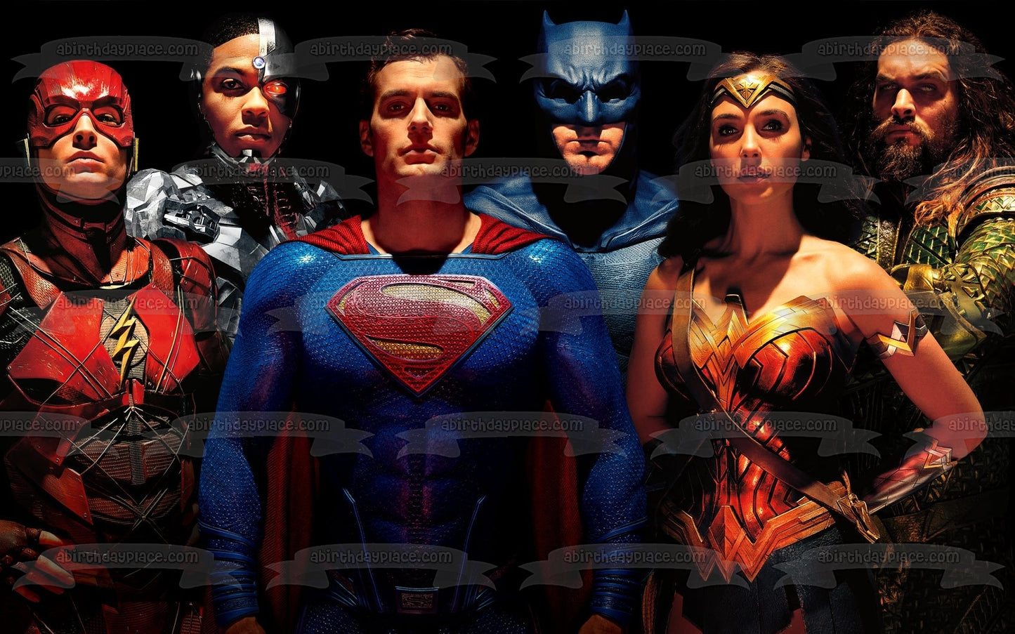 Justice League Superman Wonder Woman the Flash Batman Cyborg Edible Cake Topper Image ABPID00345