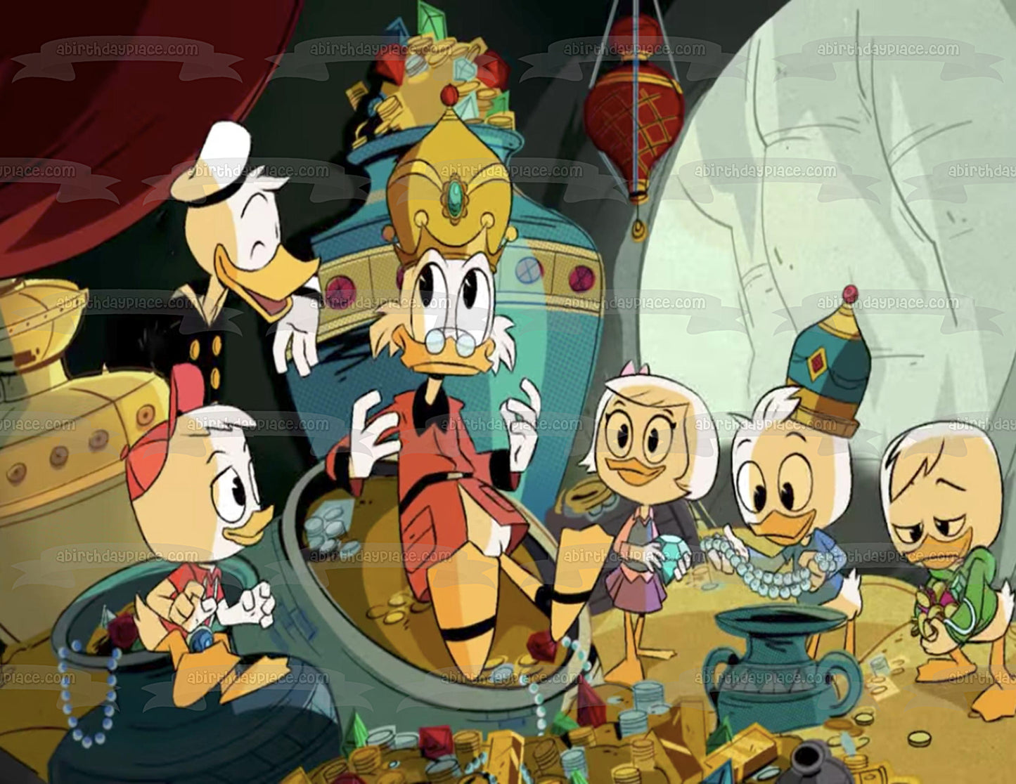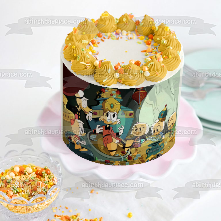Celebrate your special day with this Ducktails themed Edible Cake Topper Image featuring Scrooge McDuck, Huey, Dewey and Louie Duck!