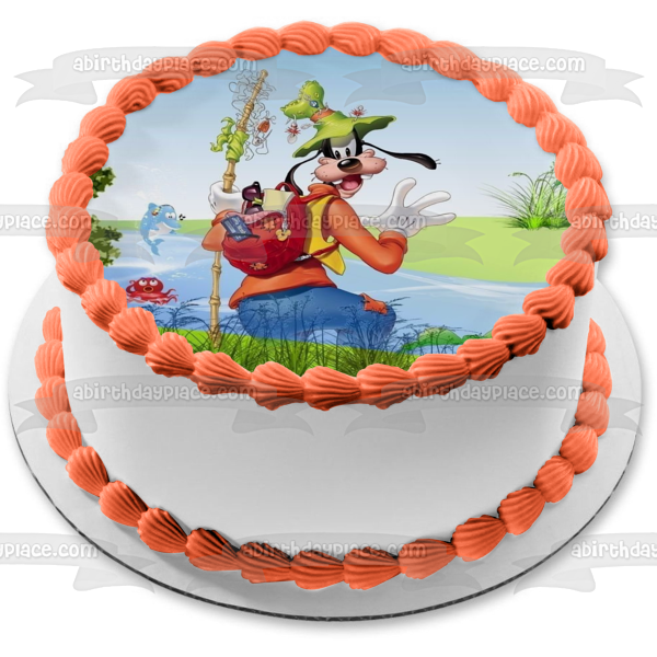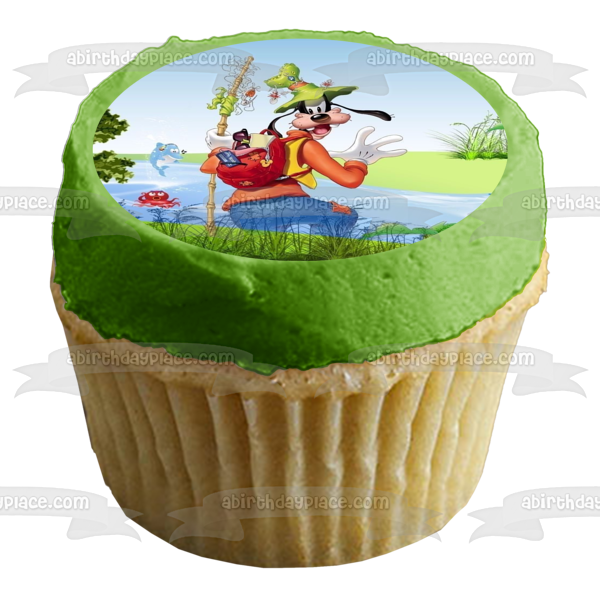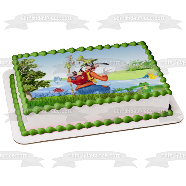 Celebrate your Mickey Mouse and Friends fan with this Edible Cake Topper Image featuring Goofy Fishing with Frogs!