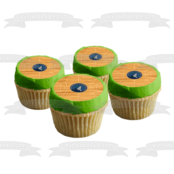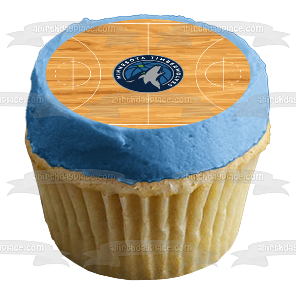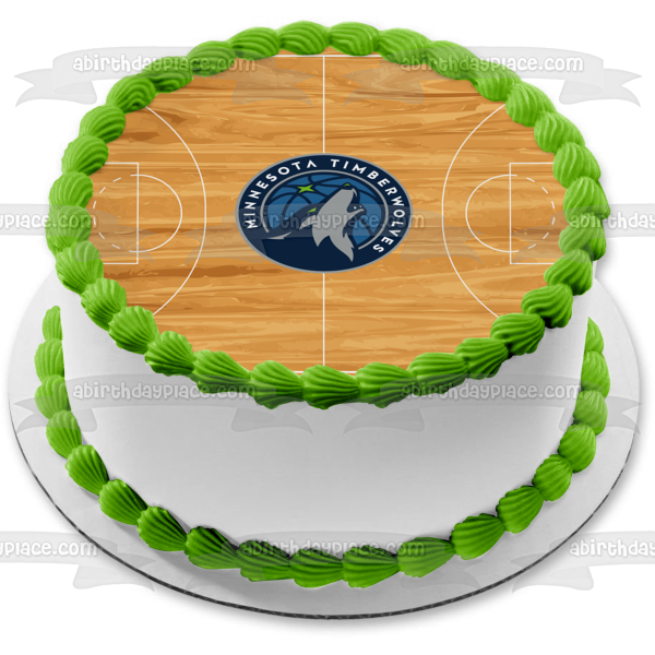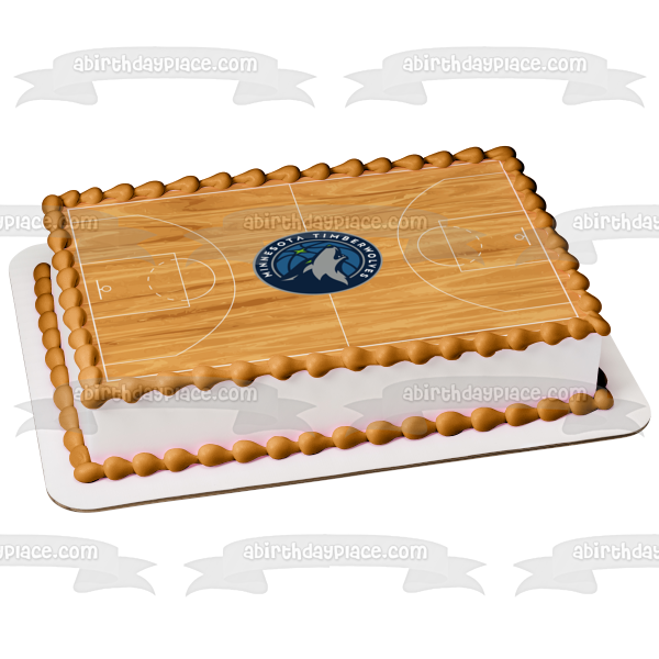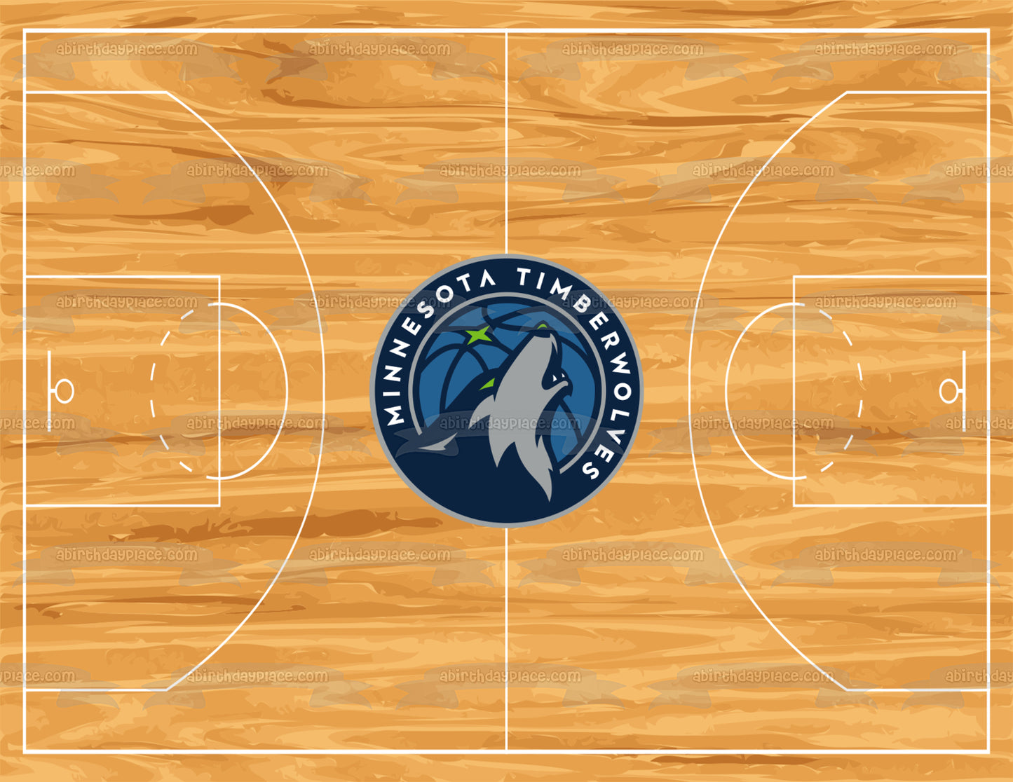 celebrate your sports fan with this Basketball themed Edible Cake Topper Image featuring the logo of the Minnesota Timberwolves Basketball Team on a Basketball Court Background!