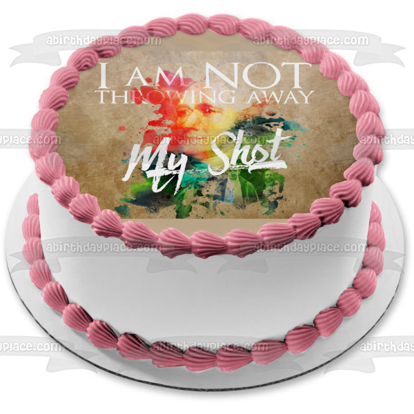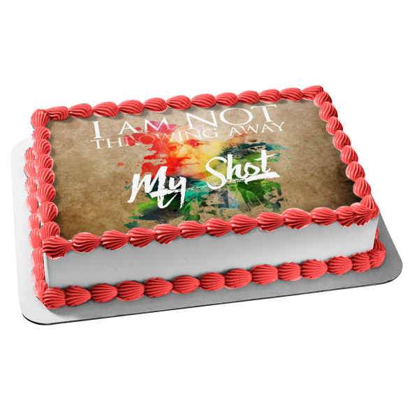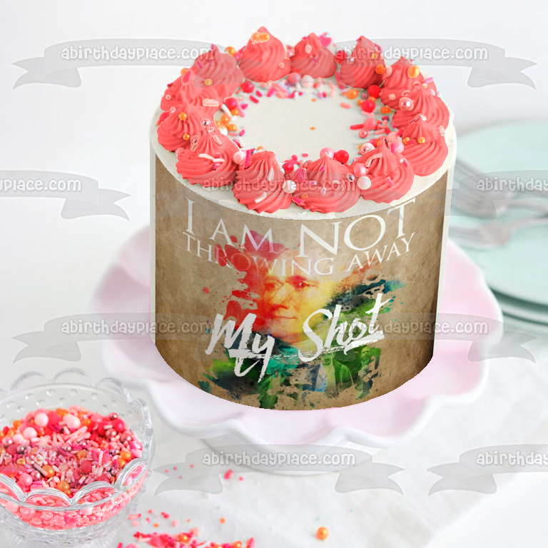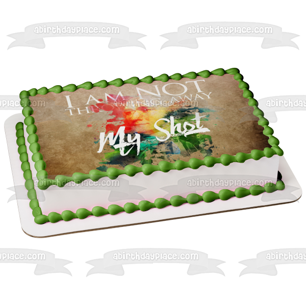 Celebrate your Hamilton fan with this Edible Cake Topper Image featuring the words "I Am Not Throwing Away My Shot"