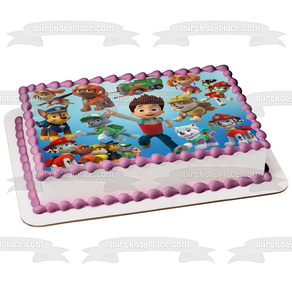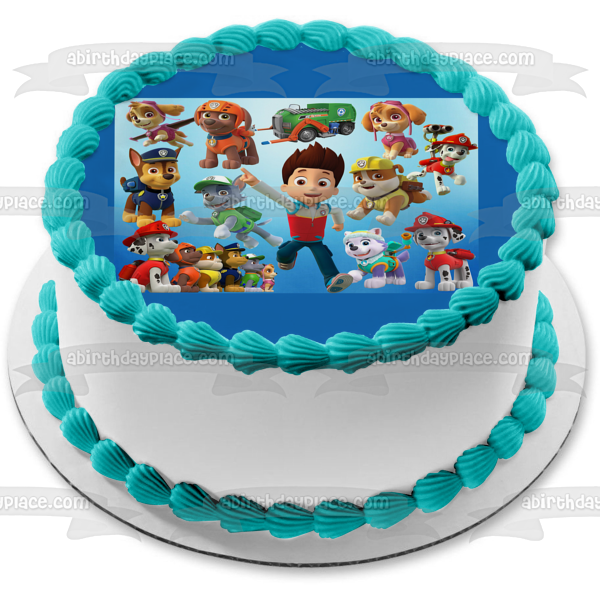 Celebrate your Paw Patrol Fan with this Edible Cake Topper Image featuring Marshall, Rocky, Rubble and Skye!