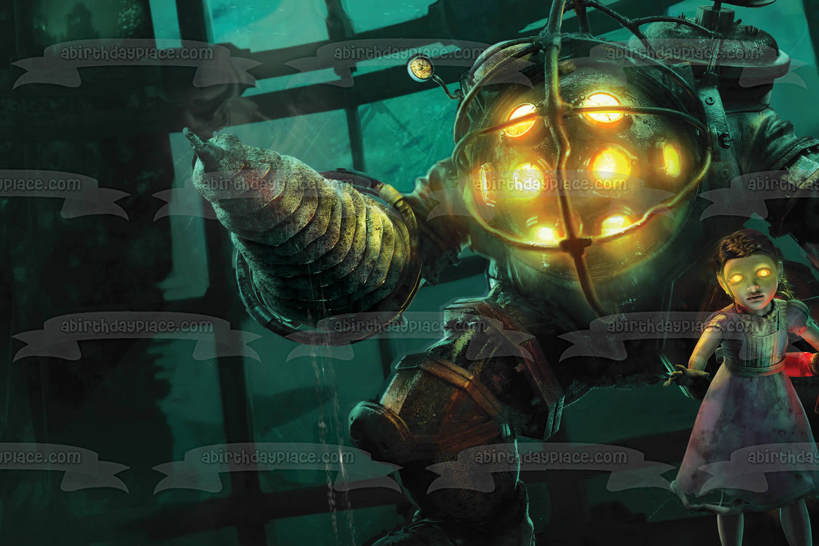 Celebrate your day with this Bioshock themed Edible Cake Topper Image featuring a Big Daddy and a Little Sister!