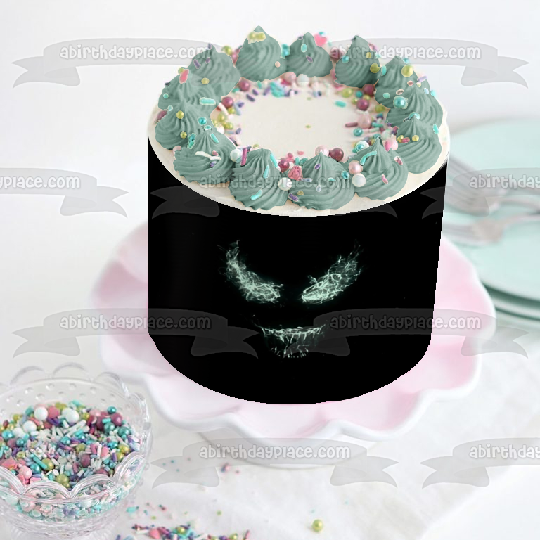 Celebrate your day with this Venom themed Edible Cake Topper Image featuring Venoms Eyes and Mouth Glowing in the Darkness!