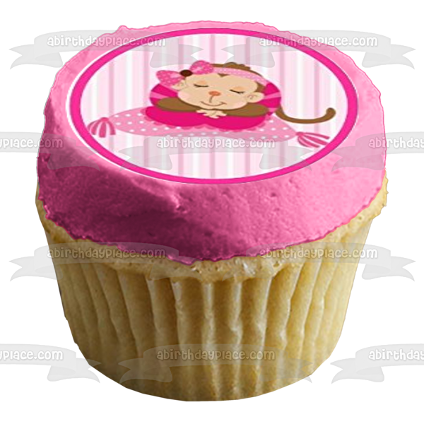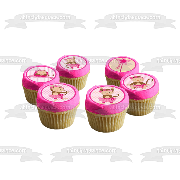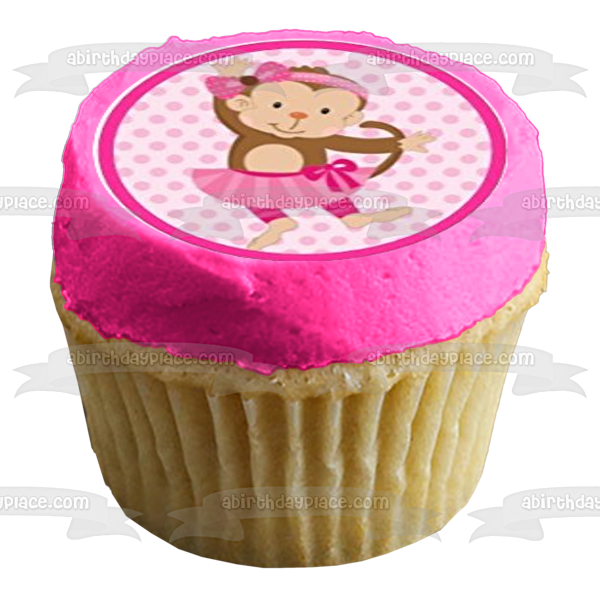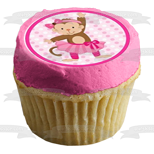 Celebrate your special day with these 24 Count Ballet themed Edible Cupcake Topper Images featuring a Monkey Ballerina wearing a Pink Tutu and Bow!