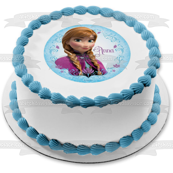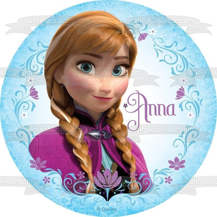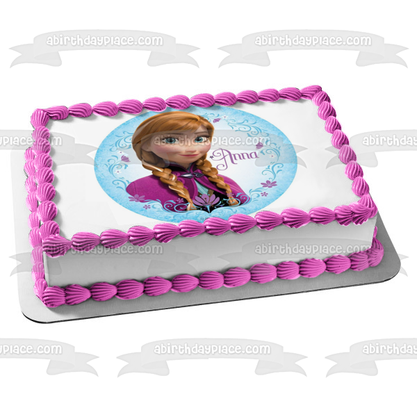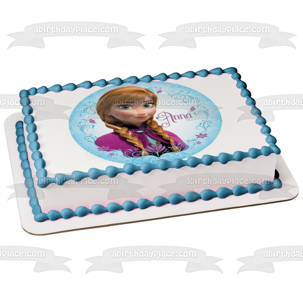 Celebrate your special day with this Frozen themed Edible Cake Topper Image featuring Anna with Braids and Flowers!