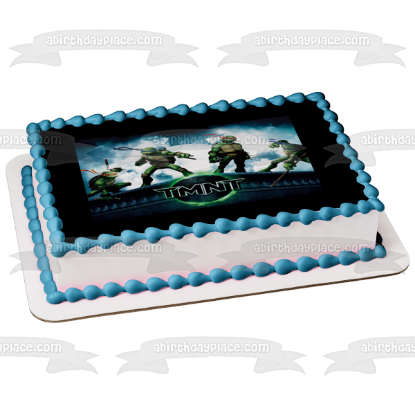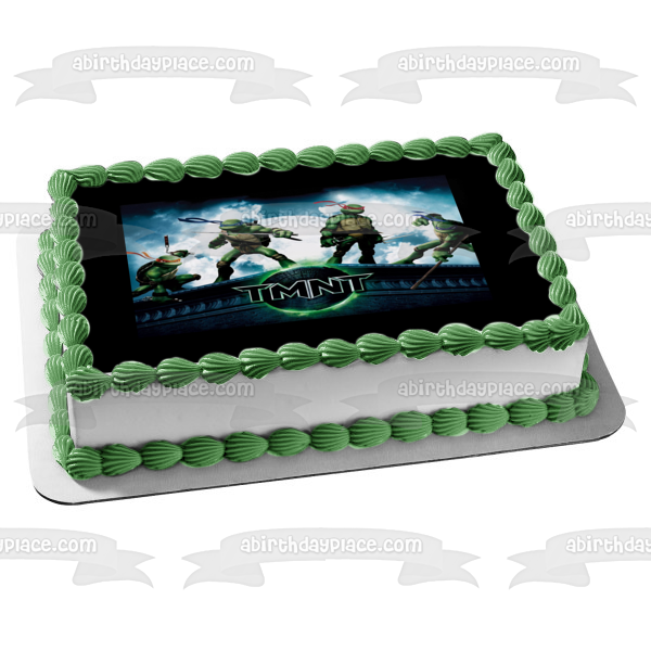 Celebrate your day with this Teenage Mutant Ninja Turtles themed Edible Cake Topper Image featuring Leonardo, Donatello, Raphael and Michelangelo of the TMNT on a Black Border!