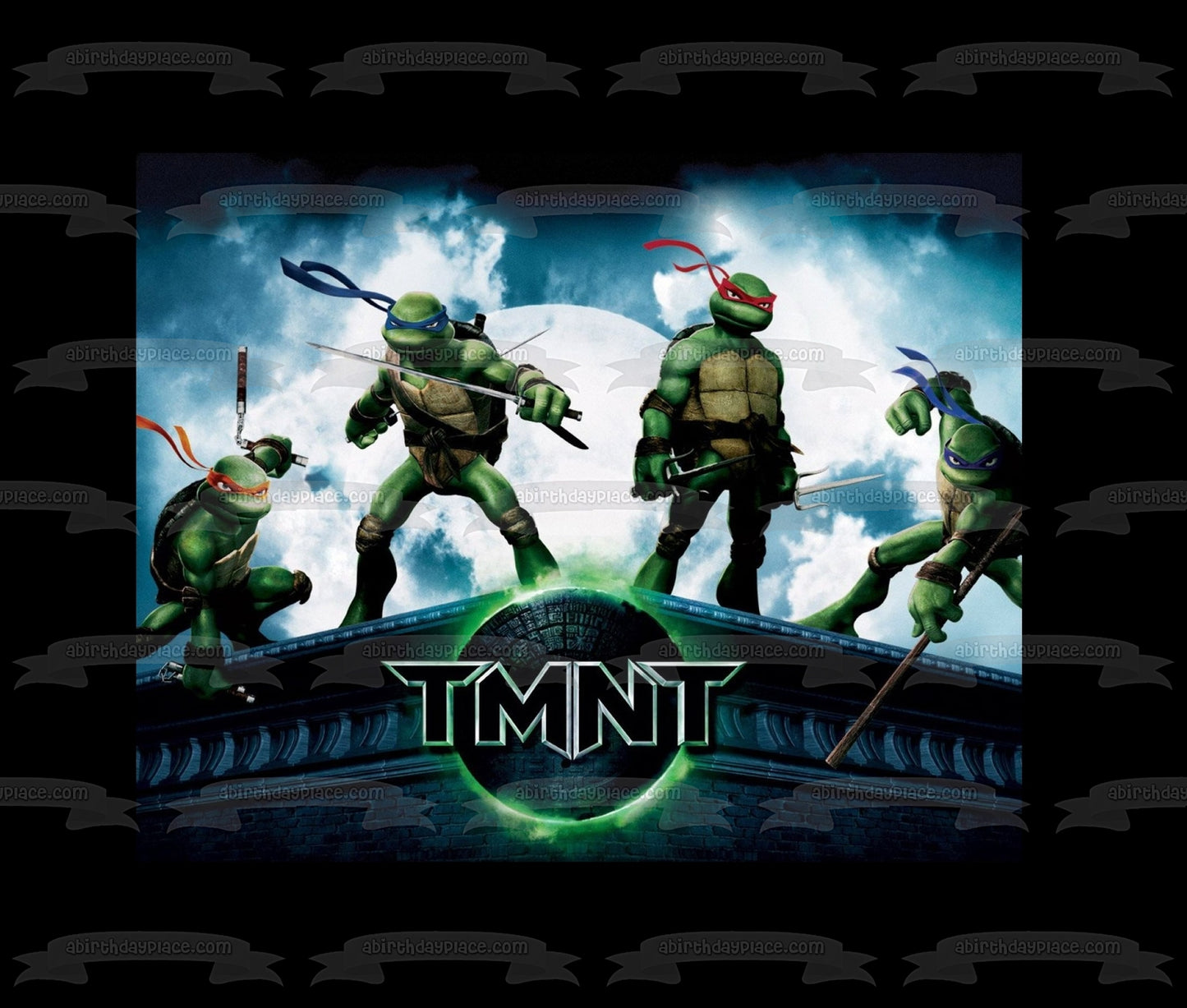Teenage Mutant Ninja Turtles Tmnt Leonardo Donatello Raphael Michelangelo Black Border Edible Cake Topper Image ABPID00724