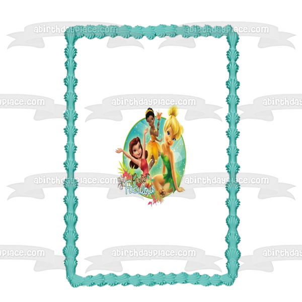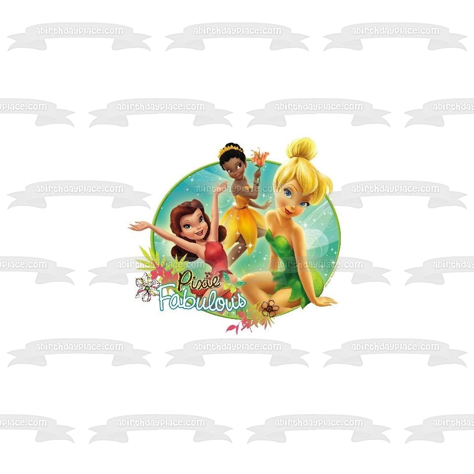 Celebrate with this Fairies themed Edible Cake Topper Image featuring Tinkerbell with the words "Pixie Fabulous"!