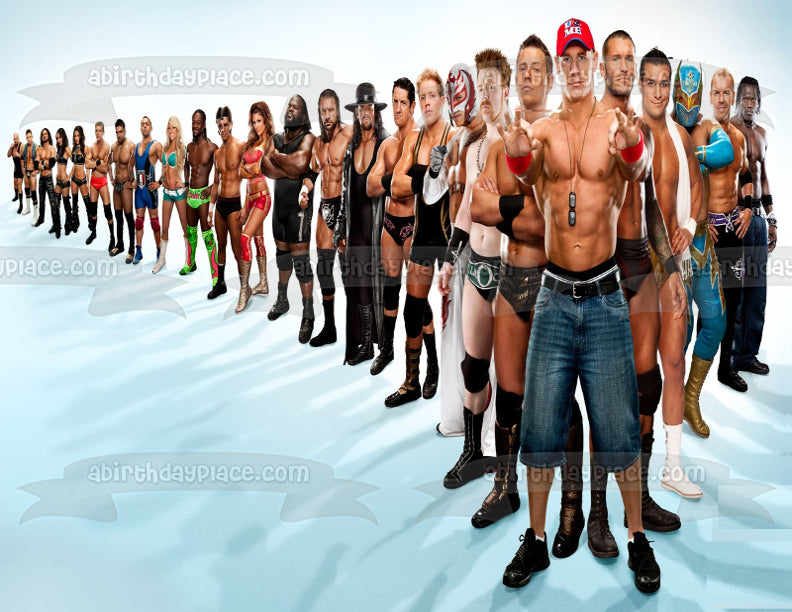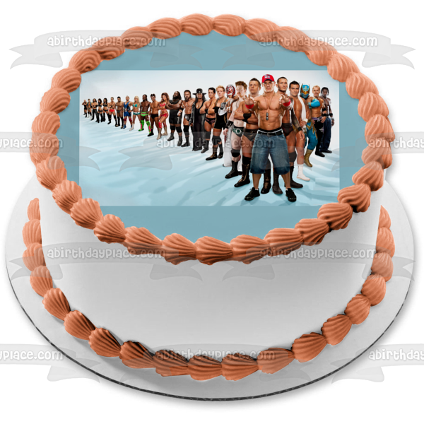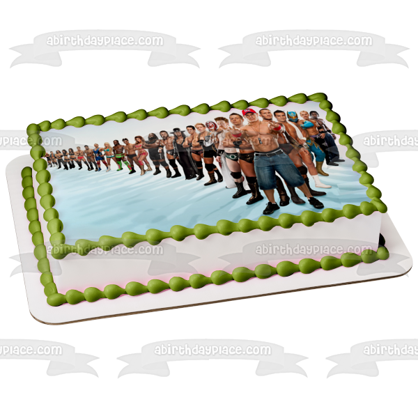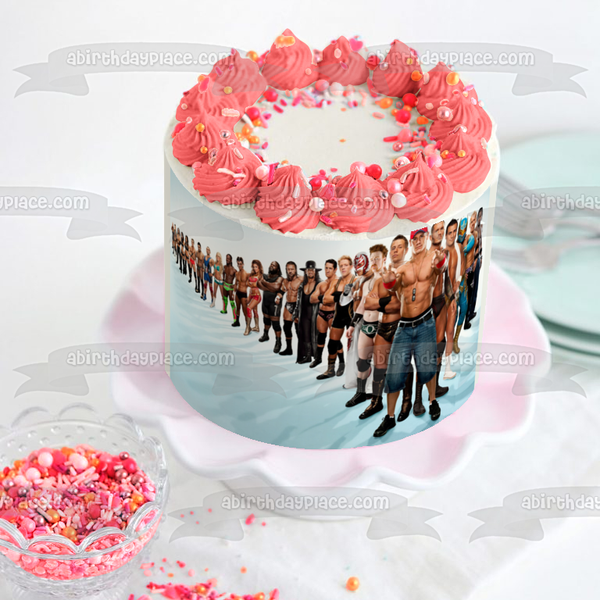 Celebrate your Professional Wrestling fan with this Edible Cake Topper Image featuring a Large Group of WWE Wrestlers!
