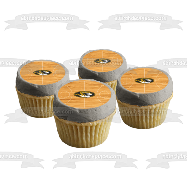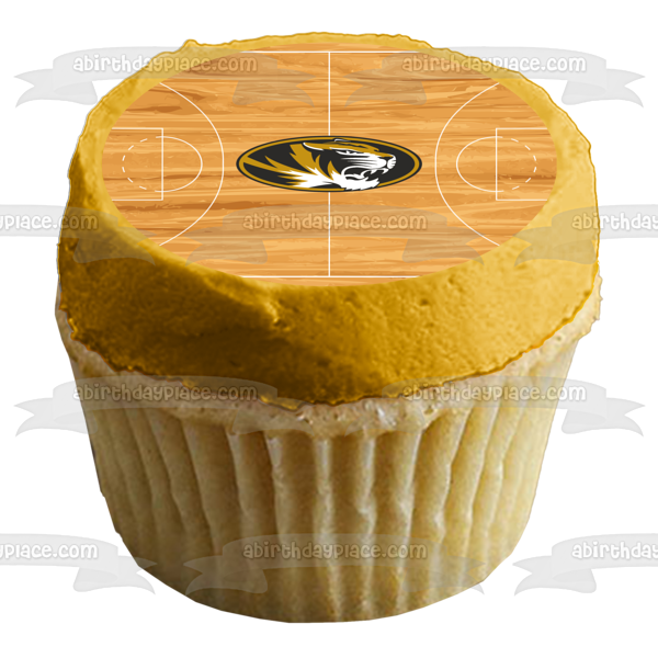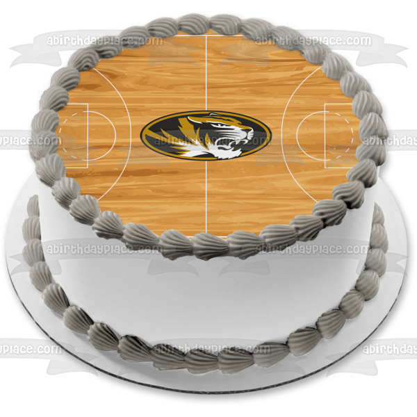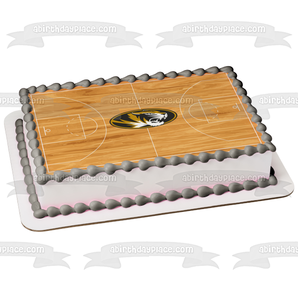Celebrate your Sports fan with this Edible Cake Topper Image featuring the Logo of the Missouri Tigers on a Basketball Court!