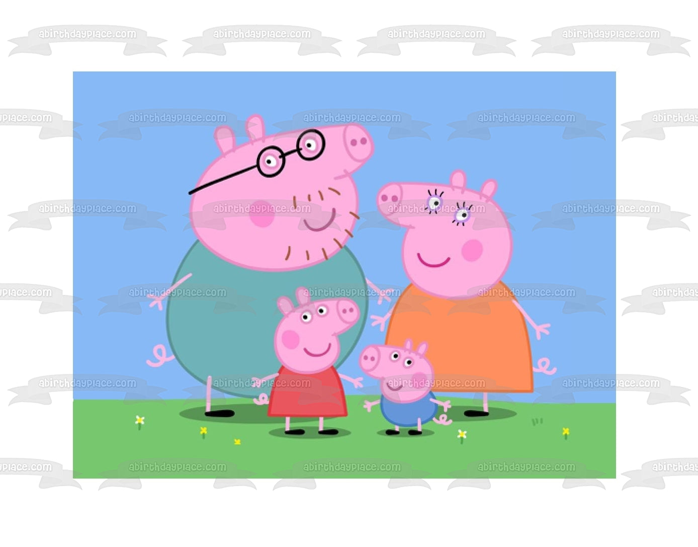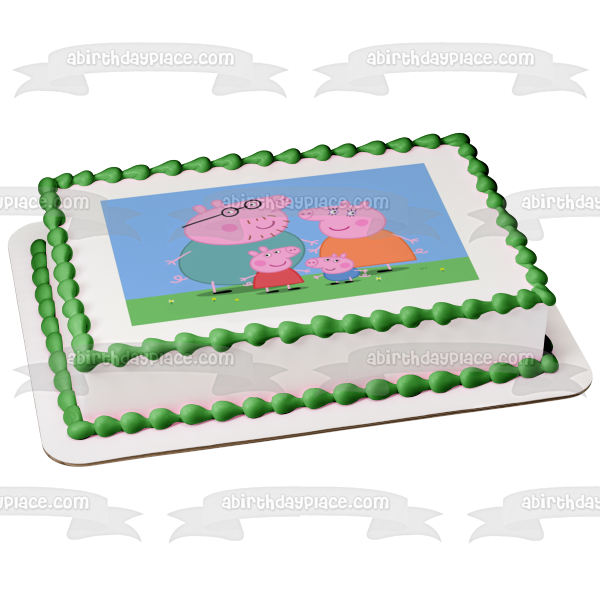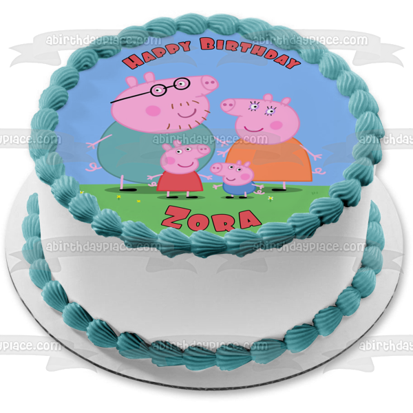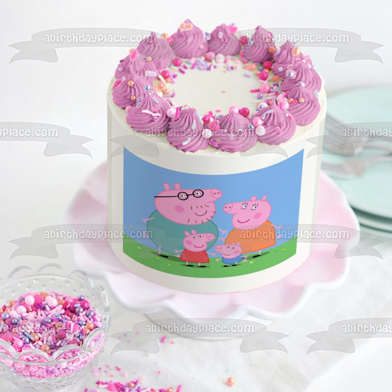 Celebrate your special occasion with this Peppa Pig themed Edible Cake Topper Image featuring Peppa Pig, Mummy, Daddy and George!