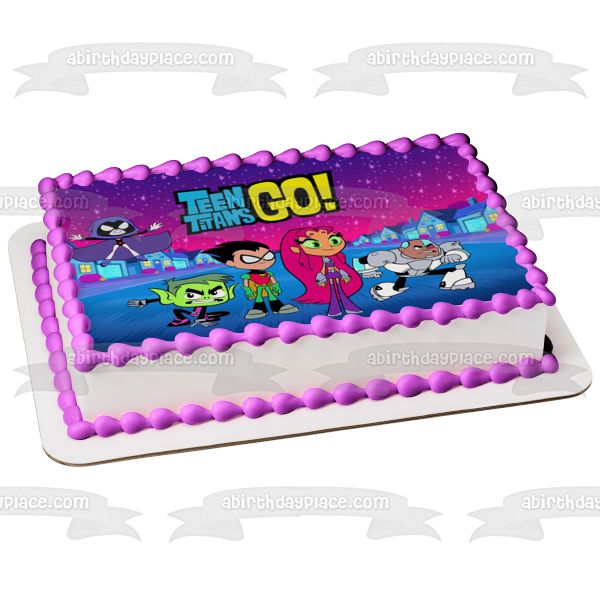 Celebrate your day with this Teen Titans Go themed Edible Cake Topper Image featuring Robin, Raven, Cyborg, Star Fire and Beast Boy!