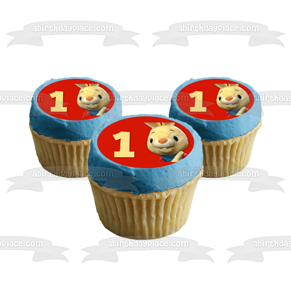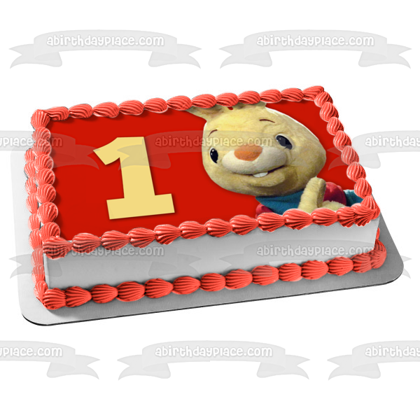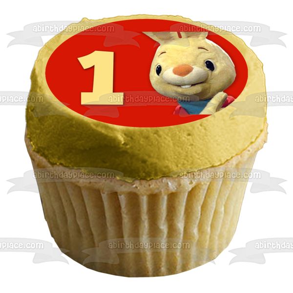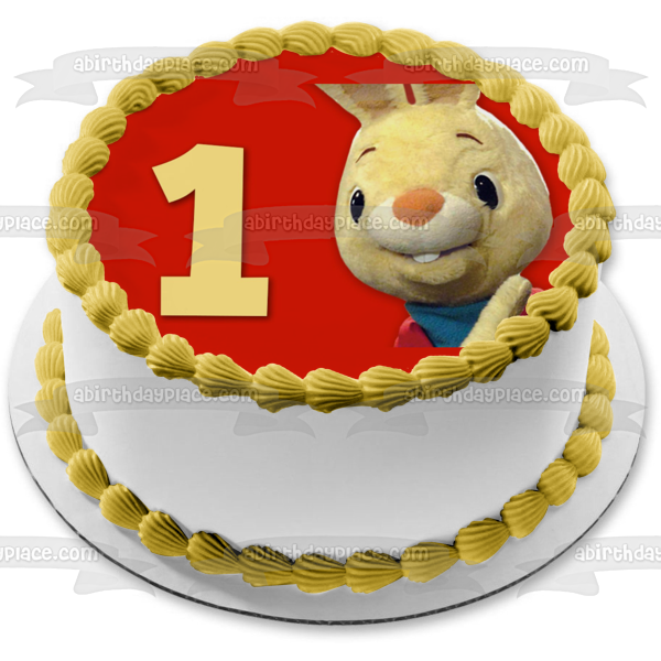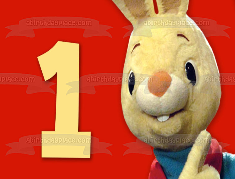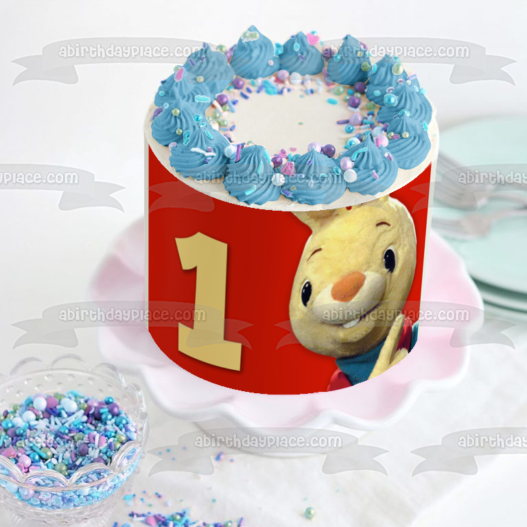 Celebrate your little one's 1st birthday with this Harry the Bunny themed Edible Cake Topper Image featuring Happy 1st Birthday!